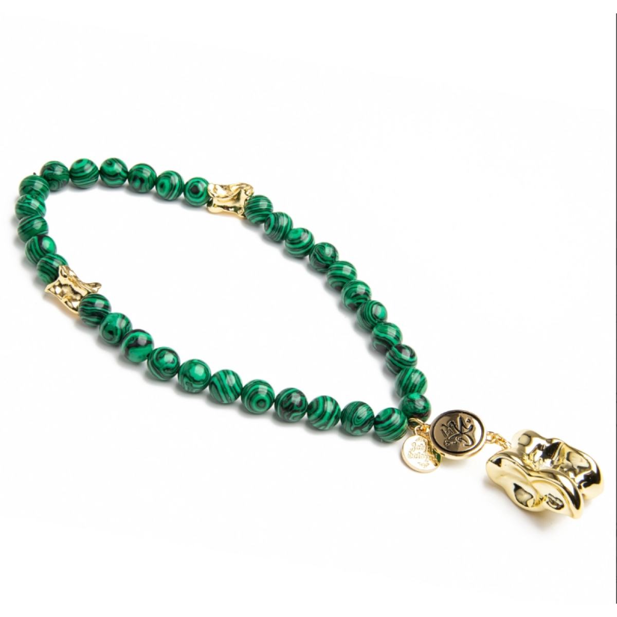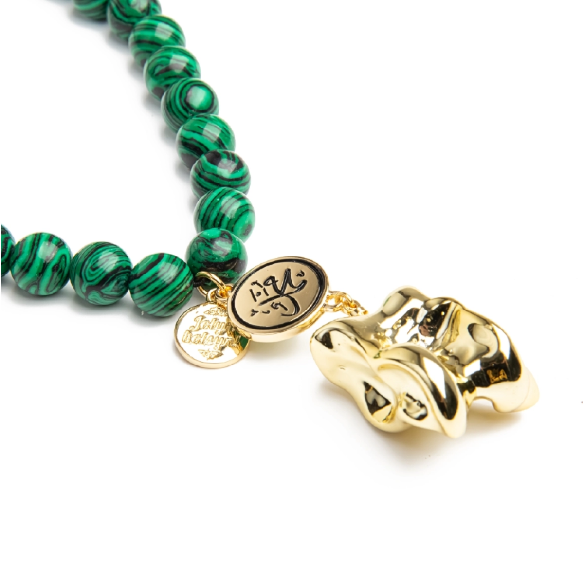 Данный тасбих выполнен из аккуратно собранных бусин в разных цветовых вариантах — классический чёрный, благородный зелёный и светлый перламутровый оттенок. Украшен изящными золотистыми элементами и подвеской в национальном стиле, придающей изделию особую выразительность.