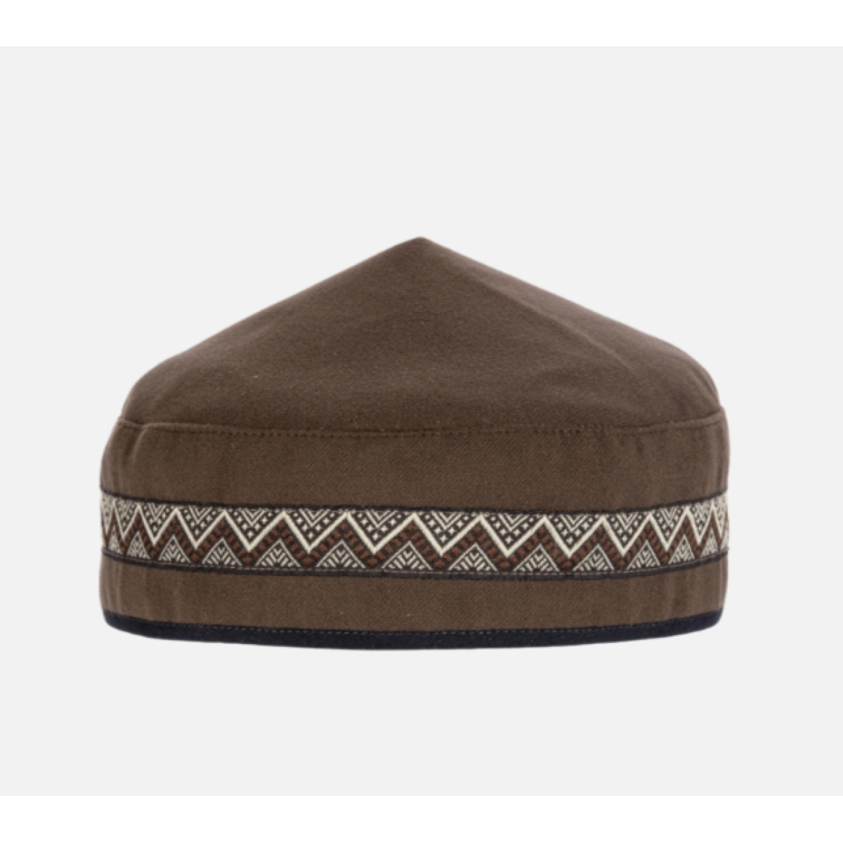 Тюбетейка «Сагадат» символизирует доброту и внутреннюю гармонию. Тёплый коричневый цвет в сочетании с аккуратным орнаментом отражает спокойствие и достоинство. Название «Сағадат» означает «счастье, благополучие», что делает её оберегом добра и удачи.