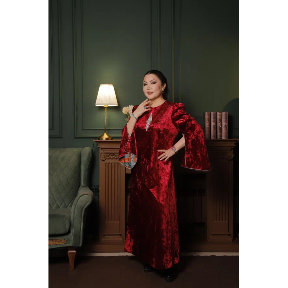 Коллекция объединяет традиционные силуэты и современное прочтение казахского стиля. Модель подходит для женщин любого возраста — она одинаково элегантно смотрится как на молодой девушке, так и на зрелой женщине.