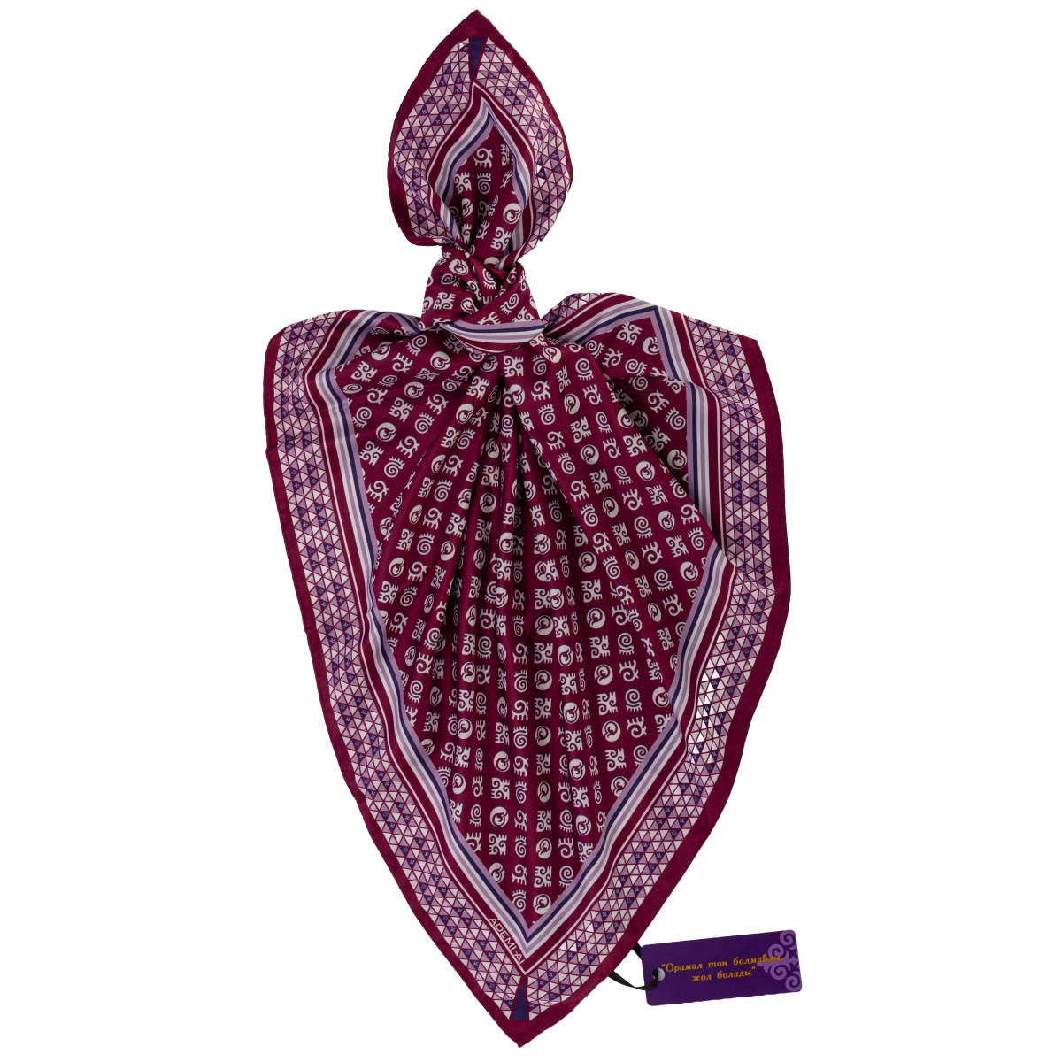 Каждый платок украшен орнаментами с глубоким смыслом, вдохновлёнными казахским культурным наследием. Узоры символизируют защиту, преемственность поколений и внутреннюю гармонию.