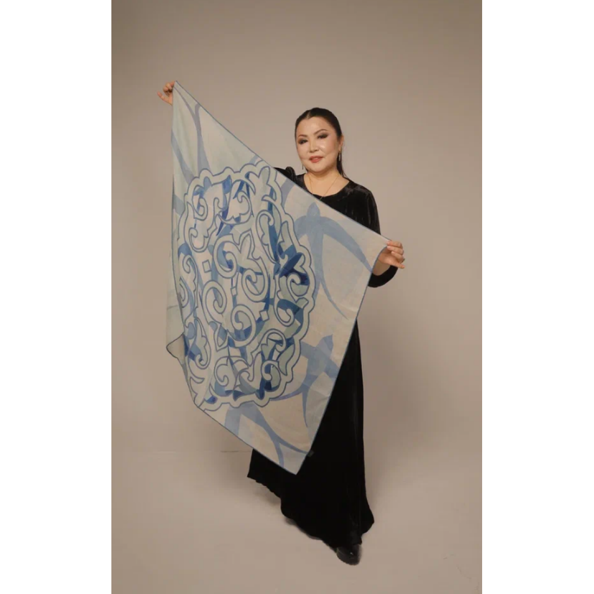 Платки размером 95×95 см выполнены из натуральной шерсти, отличаются мягкостью, теплом и благородной фактурой. Каждый орнамент несёт глубокий смысл: отражает течение жизни, внутренний баланс и связь человека с культурными корнями. Линии узоров словно ведут диалог между прошлым и настоящим.