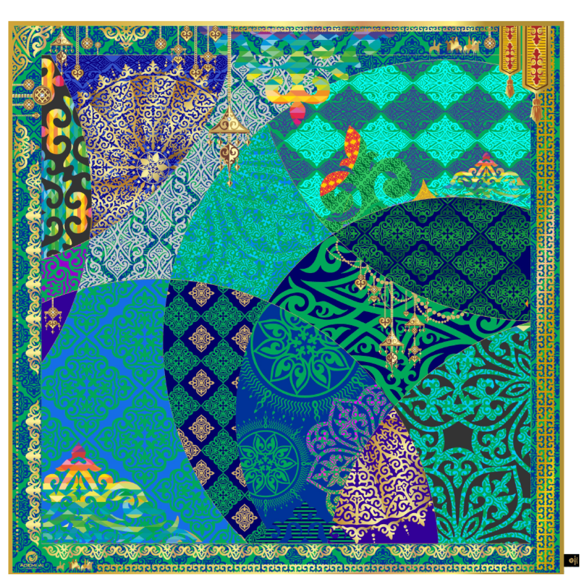 «Жанар» — это гармония традиционных узоров и утончённой женственности. Каждый фрагмент платка украшен казахским орнаментом, отражающим богатство культуры, внутреннюю красоту и символику единства. Сочетание различных мотивов в одной композиции создаёт образ вдохновения и глубины.