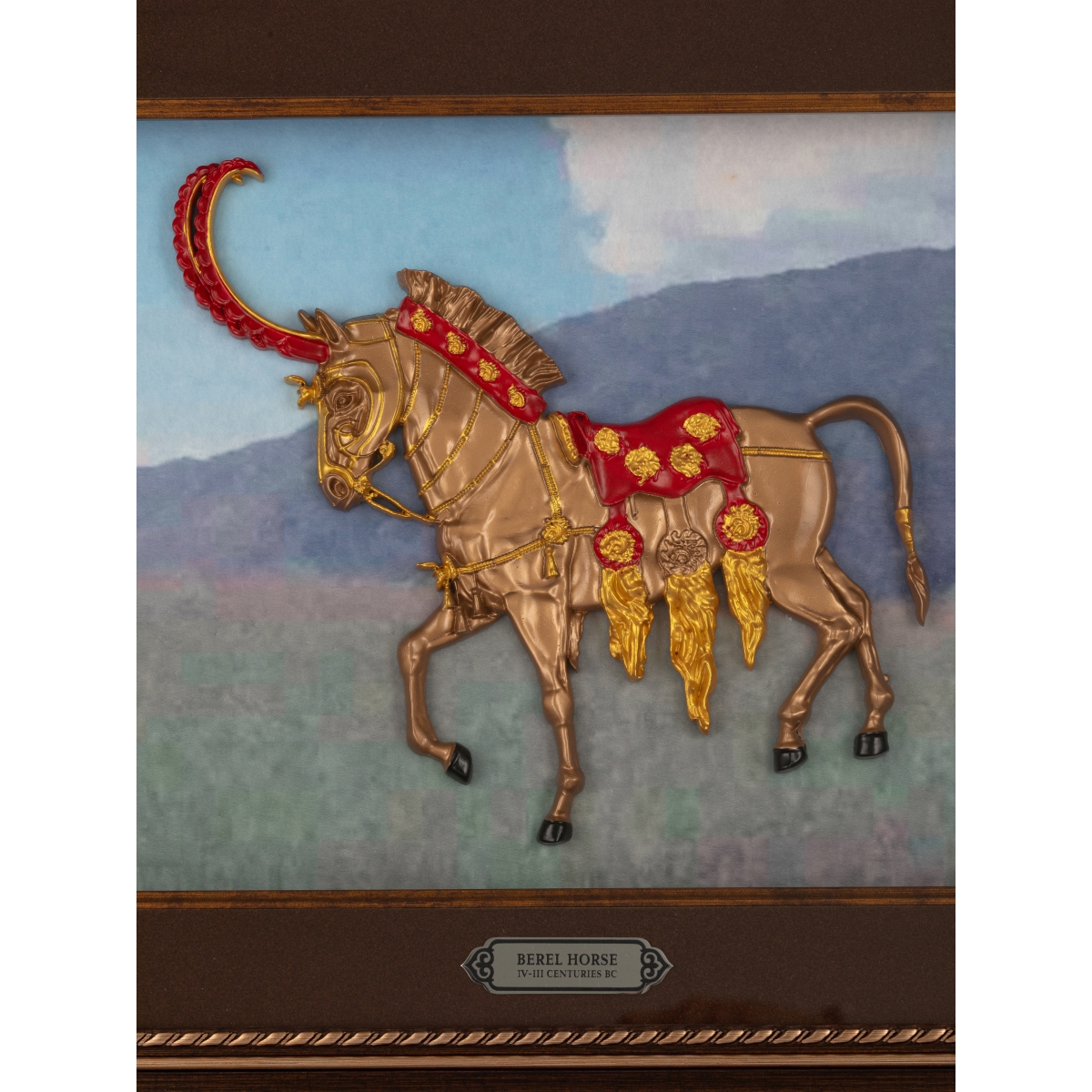 Декоративная 3D картина, вдохновлённая уникальными археологическими находками Берельские курганы. Изображение берельской лошади символизирует благородство, силу и духовную связь древних кочевников со своими верными спутниками. Лошади занимали особое место в культуре степных народов, олицетворяя свободу, отвагу и движение вперёд. Объёмная композиция и декоративные элементы передают величие древней истории Великой степи и делают картину выразительным элементом интерьера и памятным подарком.